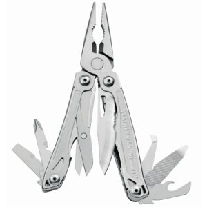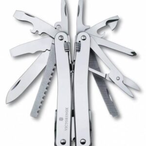Многофункциональный инструмент. Накладки рукояток из титанового сплава. Все приспособления имеют фиксаторы, предотвращающие случайное закрытие.
